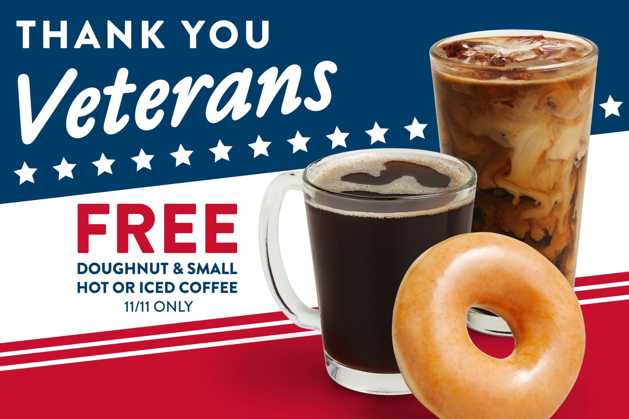 Veterans Can Stop By Krispy Kreme On Veterans Day And Get A Free Doughnut And A Small Coffee.